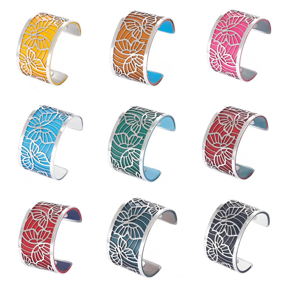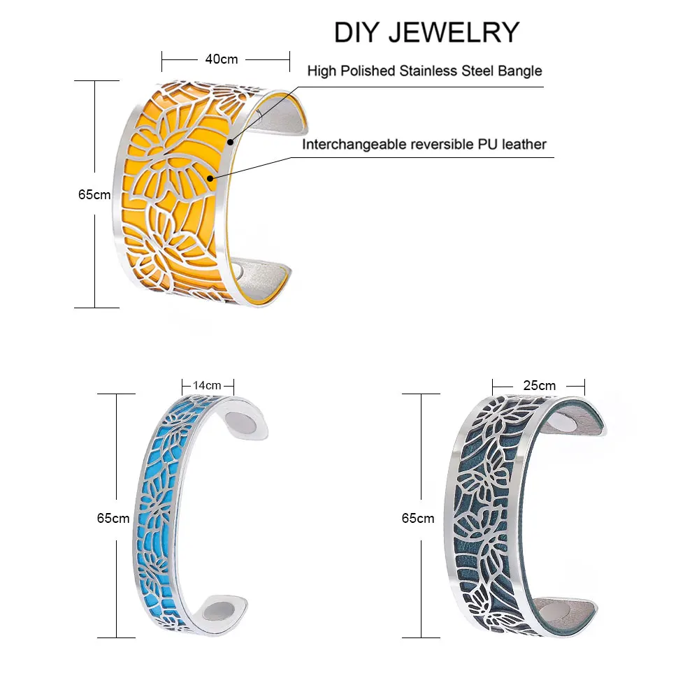 1. DIY bangle Jewelry, High polished, Adjustable,Reversible Interchangeable PU Leather.
