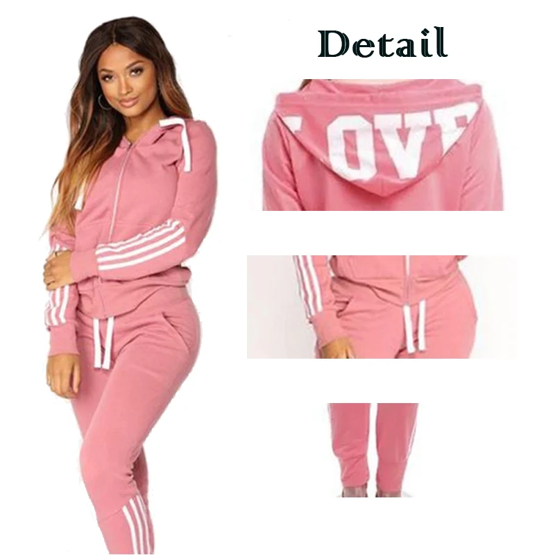 Fashion Women Track Suits Sports Wear Jogging Suits Ladies Hooded Tracksuit Set Clothes Hoodies+Sweatpants Sweat Suits