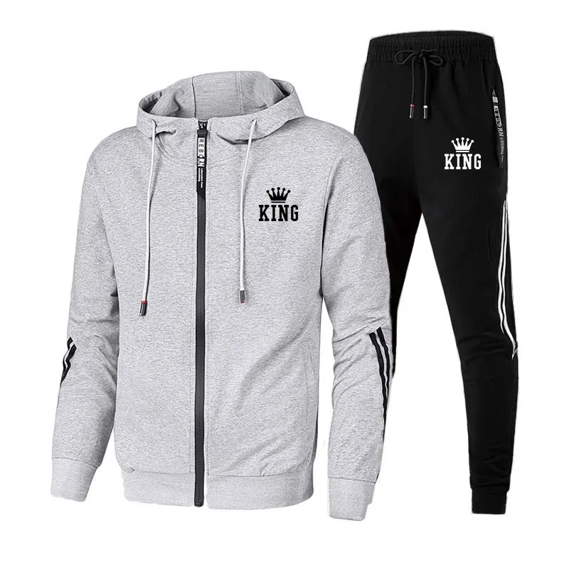Ensemble de survêtement 2 pièces pour homme, imprimé, décontracté, fermeture éclair, veste à capuche,