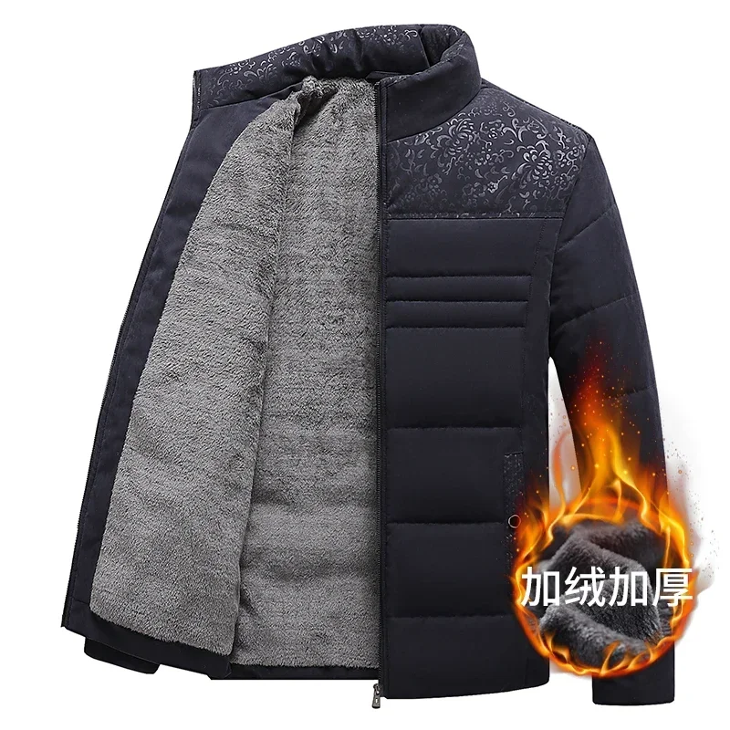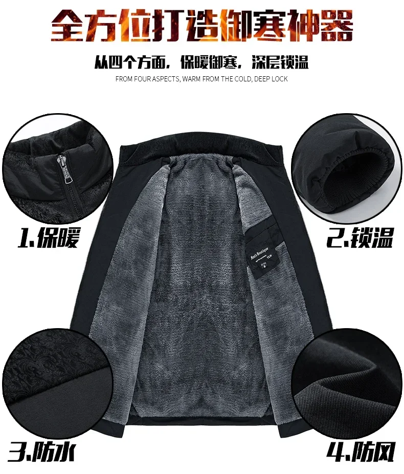 Men's Plush Thickened Parkas Stand Collar Winter Jacket Men's Parker Coat Winter Warm Thick Zipper Coat Padded Overcoat for Men