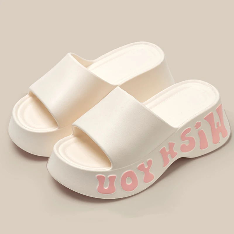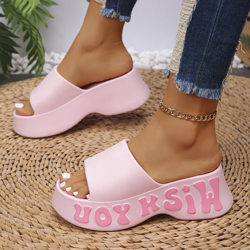 Chaussons à semelle épaisse pour femmes, chaussures d'été à plateforme compensée, imprimées, antidérapantes, semelles souples