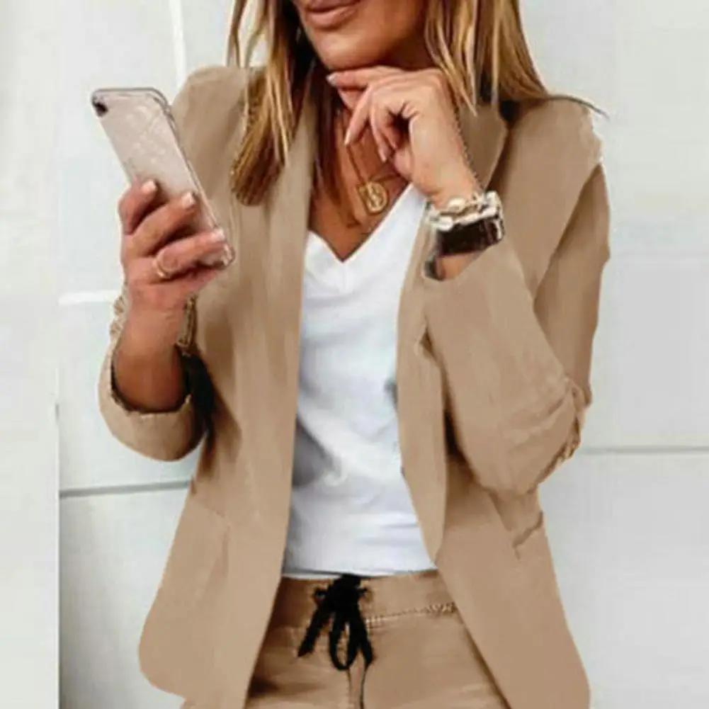 Ensemble manteau et pantalon pour femme, élégant costume d'affaires à manches longues, coupe slim, couleur unie, cordon de serrage
